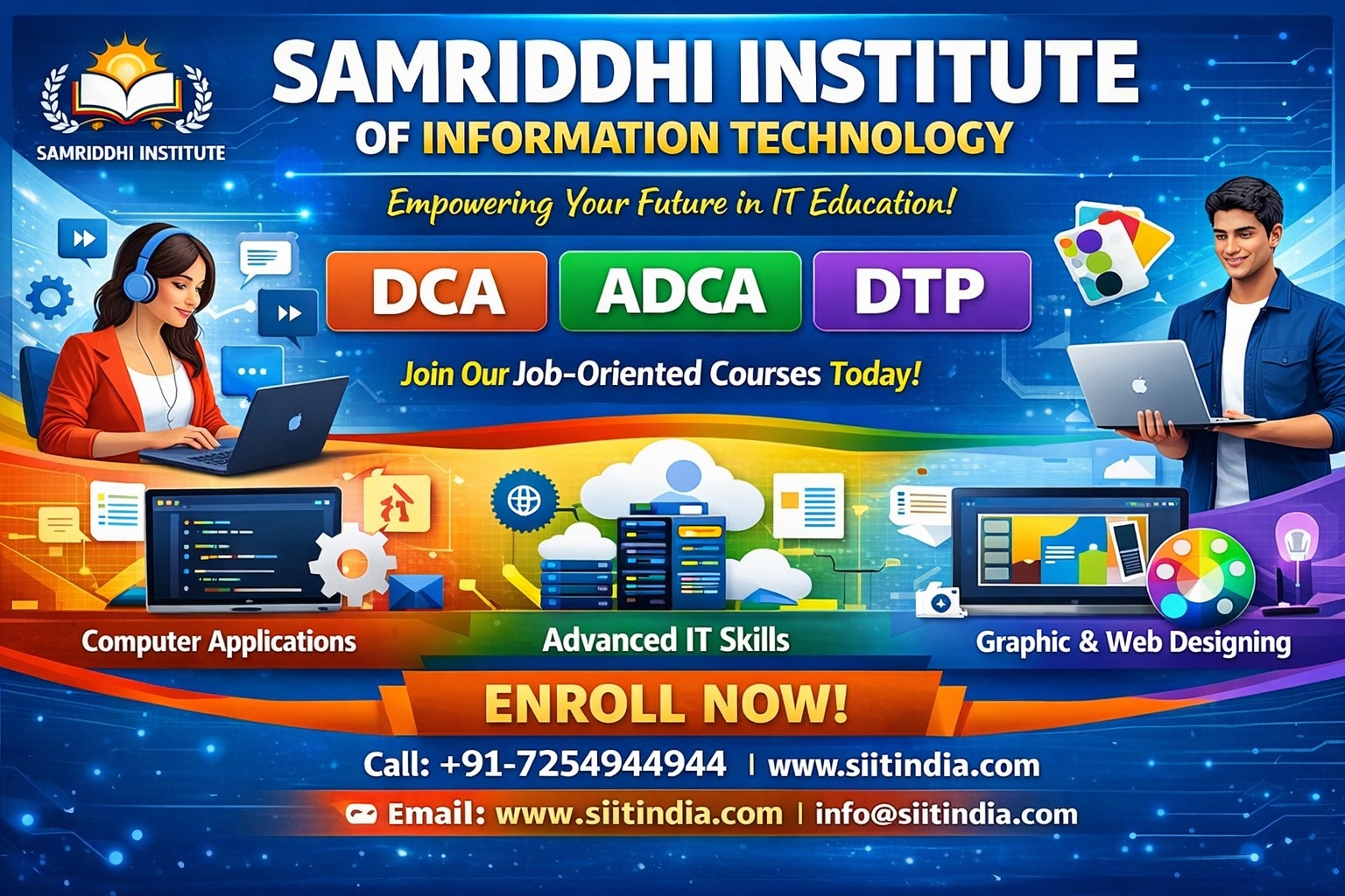 Samriddhi Intitute of Information Technology, we focus on bridging the gap between academic learning and real-world industry requirements. Our courses are carefully designed to provide hands-on experience, modern curriculum, and job-ready skills in the field of computer applications, digital technologies, and professional development. We believe that education should not only provide knowledge but also build confidence, creativity, and problem-solving abilities that help students succeed in competitive environments.